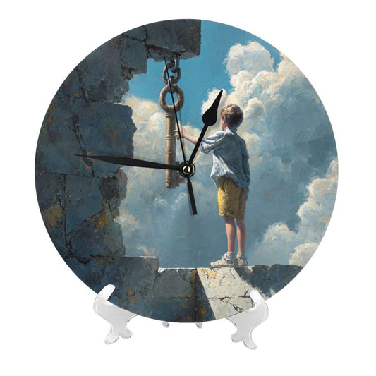 25cm Silent Wall Clock|Boy and the Key in the Sky|Surreal Fantasy Illustration