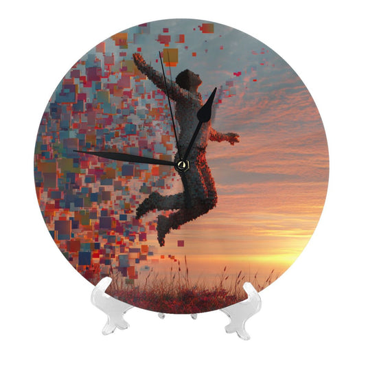 25cm Jumping Pixel Art Clock | Digital Human in Sunset Scene | Modern Silent Wall Timepiece