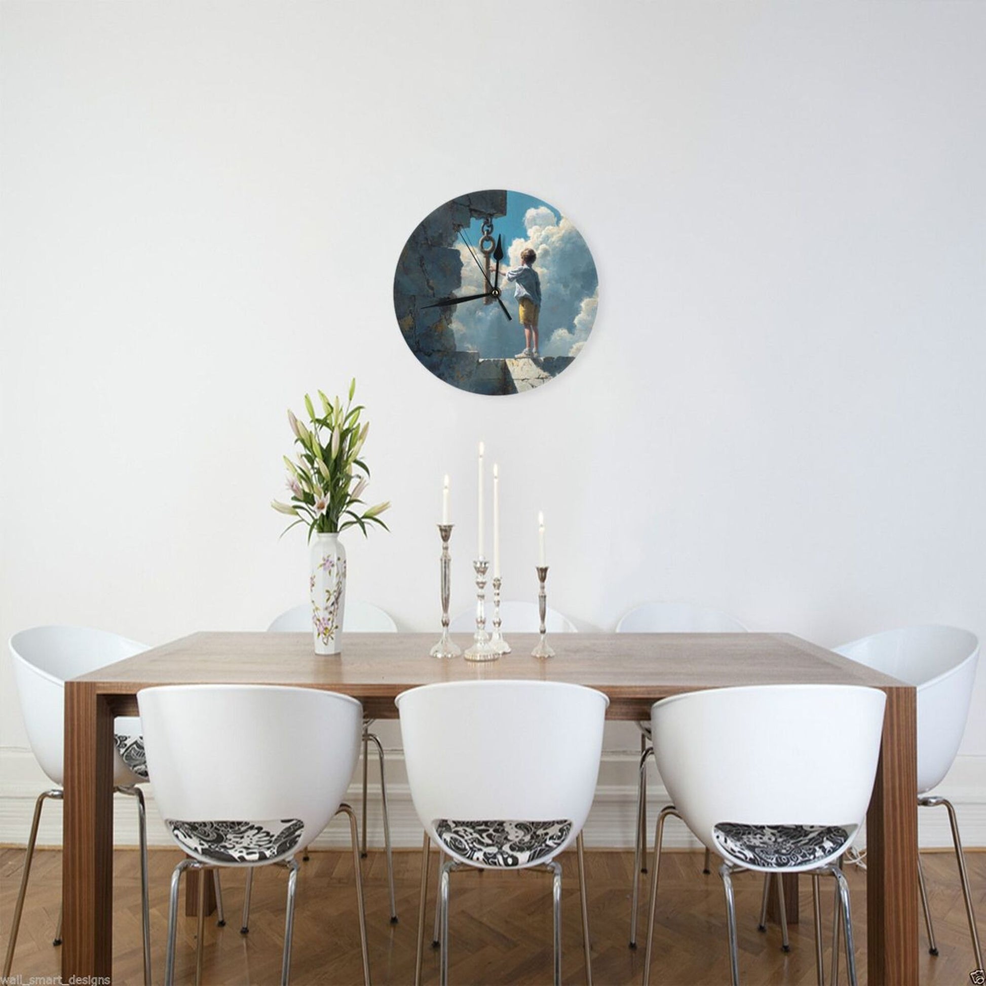 25cm Silent Wall Clock|Boy and the Key in the Sky|Surreal Fantasy Illustration